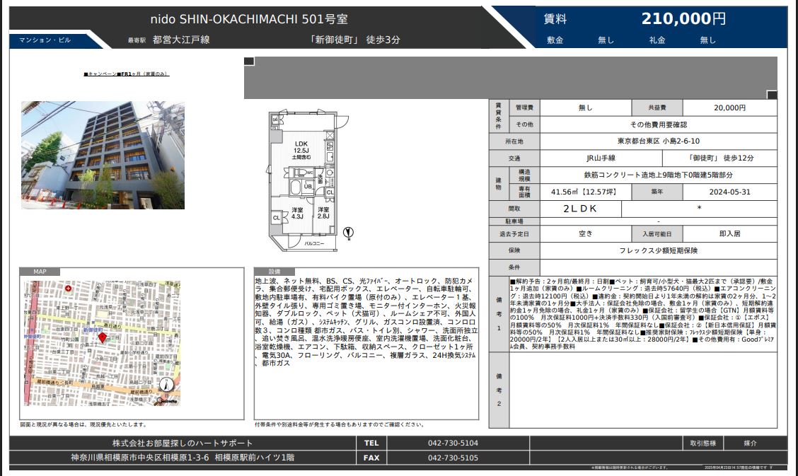 他空き号室についてはお電話042-730-5104又は公式LINEからお気軽にお問い合わせくださいませ。